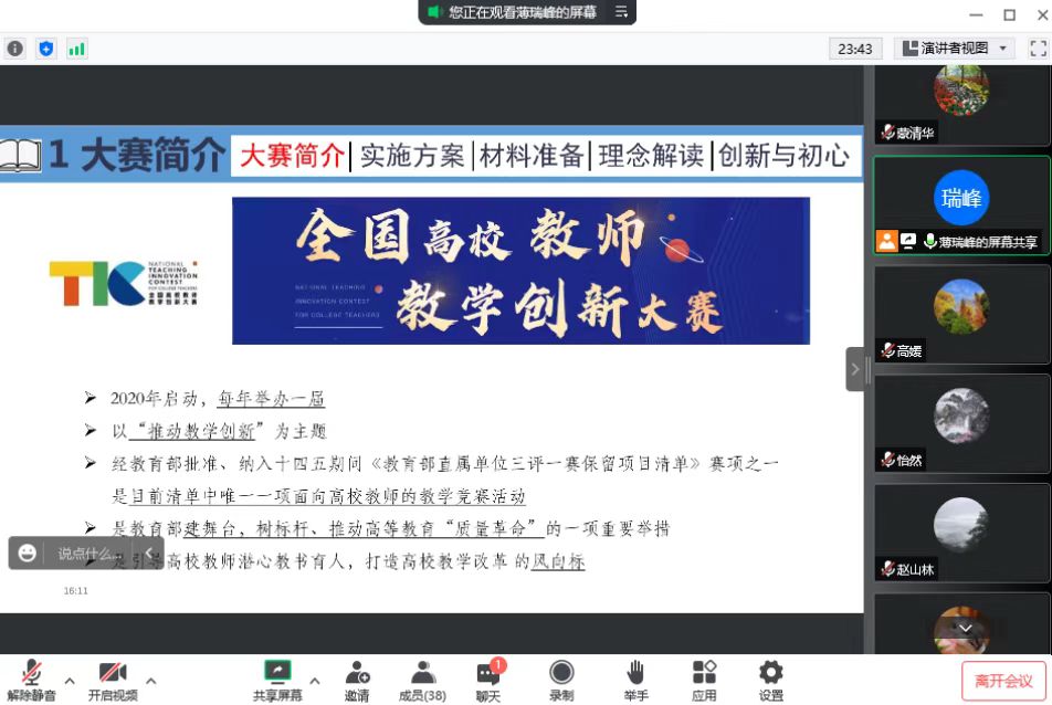 薄瑞峰教授主讲,活动的主题为“全国高校教师教学创新大赛实施方案和理念解读”,在交流中,相互分享对全国高校教师创新大赛的感悟。薄瑞峰教授围绕全国高校教师教学创新大赛,结合自身参赛经历,从“大赛简介”“实施方案”“材料准备”“理念解读”“案例分享”及“创新与初心”等六个方面展开了详细的讲解。为广大教师呈现了一场剖析精准、案例丰富的教学沙龙。