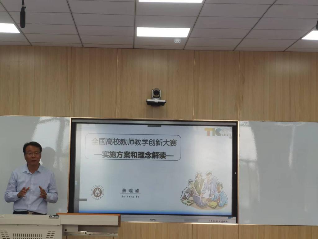 薄瑞峰教授主讲,活动的主题为“全国高校教师教学创新大赛实施方案和理念解读”,在交流中,相互分享对全国高校教师创新大赛的感悟。薄瑞峰教授围绕全国高校教师教学创新大赛,结合自身参赛经历,从“大赛简介”“实施方案”“材料准备”“理念解读”“案例分享”及“创新与初心”等六个方面展开了详细的讲解。为广大教师呈现了一场剖析精准、案例丰富的教学沙龙。