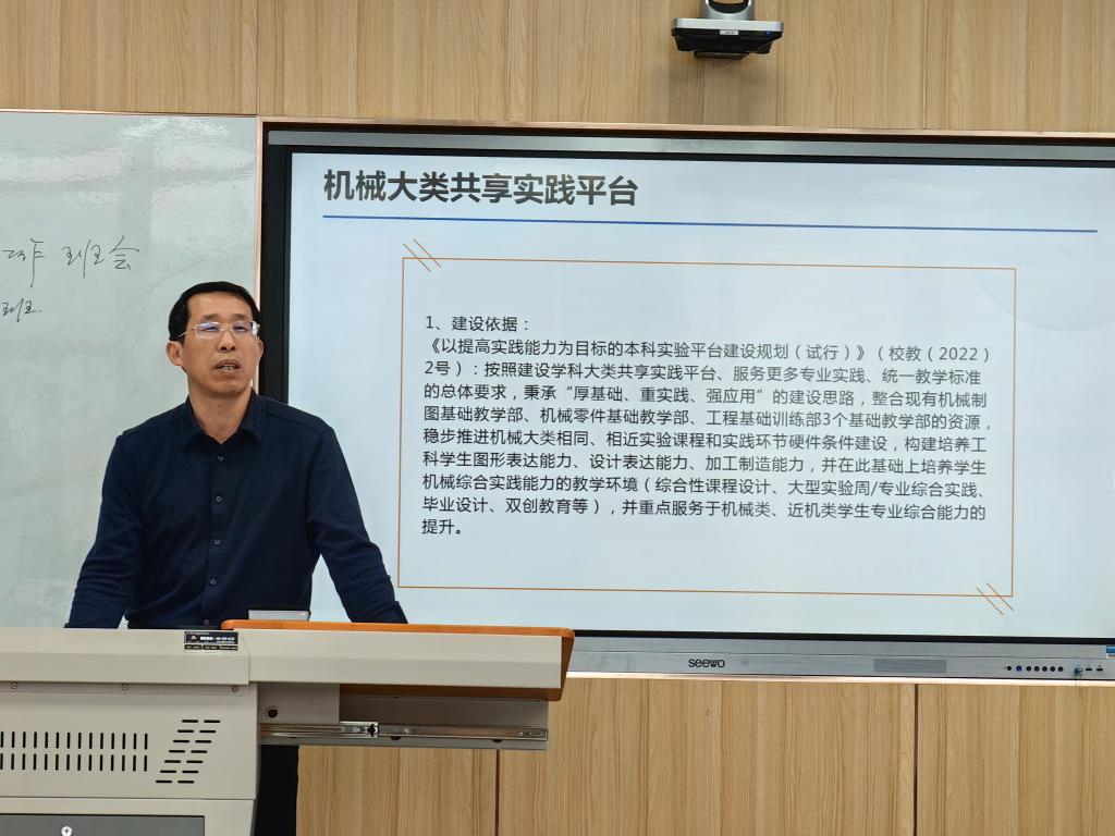 的目标是强化工科基础理论及实践教学过程,教学实践过程标准化、统一化,提高人才培养质量,使学生具有较强的创新思维和创业基础。利用新学院的体制、架构,形成1+1+1>3 的合力,达到培养合格人才、适应社会发展人才的目标!冯教授从机械大类平台的平台建设理念和实践教学基本要求出发,详细介绍机械大类共享平台建设思路、教师在大类平台中定位与作用,对学生实践教学的要求,鼓励教师积极学习、使用新设备、开发新设备的综合型、创新型实验,提高学生综合素质和创新创业能力。大类共享实践平台具体网上预约系统及绩效考核方面的具体措施,针对全校专业教师共同教研活动成立了虚拟教研室及其运行机制等。
