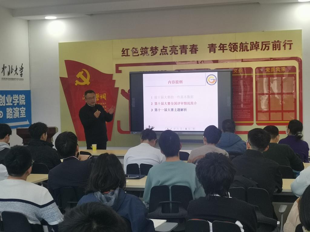 王教授从三个方面进行了讲解,首先对机械创新设计大赛举办的目的及基本情况及进行了简要介绍,并对历届参赛学校及参赛作品数量进行了回顾;其次对历届比赛的评审情况进行了说明,并对第十届获奖优秀作品进行了演示;最后,对第十一届机械创新设计大赛从题目获取、题目是否切题、题目确定后如何进行设计以及需提交的材料等各个角度进行了解读,为参赛教师和学生提供了新的思路。