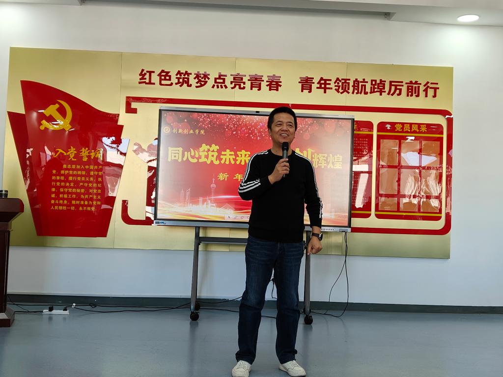 王黎明院长代表领导班子对学院教职工一年来的辛勤工作和努力付出表示衷心的感谢,并对学院一年来取得成绩进行了总结。高春强书记主要围绕“守正”和“创新”两个方面,一是坚守我们高质量的教学过程底线;二是在教学手段与教学方法上进行创新,希望新的一年,在学校创建双一流高校的大潮中,双创人要紧紧围绕建设高水平教学研究型学院和创新创业教育示范引领学院的发展定位,推动学院高质量发展,助力学校双一流建设。