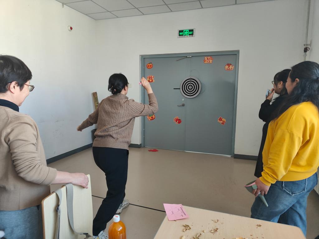 接下来茶话会进入高潮,老师们期待已久的抽奖环节和游戏游园会穿插进行,老师们每人一张游戏游园卡,在掷飞镖、投沙包、套圈游戏3个游戏环节打卡;另在游戏期间穿插由院领导、教学部主任、工会组长抽取今年茶话会一、二、三等奖。游园会上老师们欢声笑语、热情洋溢,大家释放压力,尽情欢笑,增进彼此之间的感情。