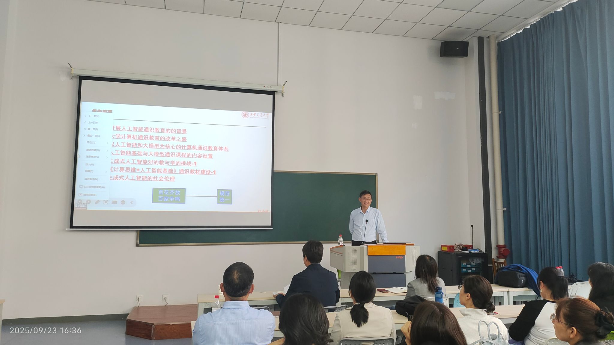 邀请西安交通大学桂小林教授作了“深入推进以人工智能和大模型为核心的计算机通识教育”的专题讲座,曹凤才院长主持,学院教师和部分学生代表参加了本次讲座。