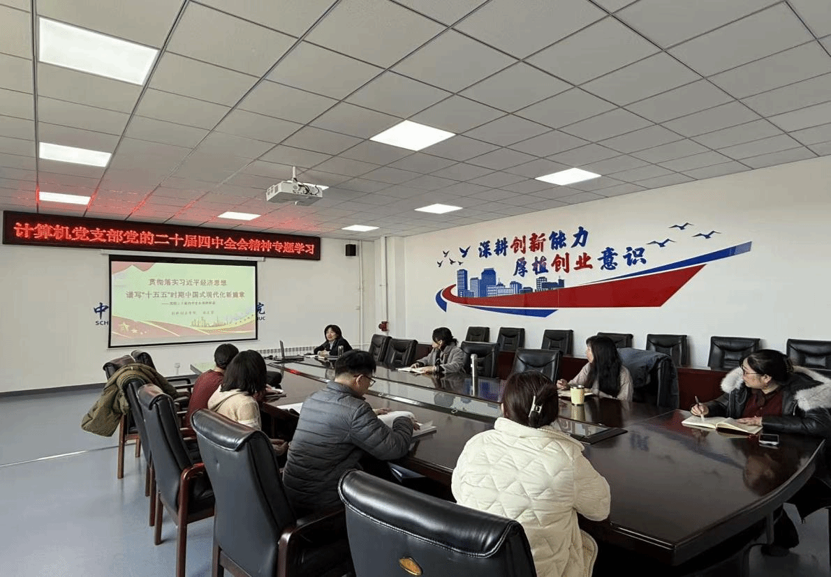 计算机基础教工党支部在A401会议室举办专题学习宣讲会,支部邀请学院副院长姬文芳作题为《贯彻落实习近平经济思想 谱写“十五五”时期中国式现代化新篇章》的宣讲报告,支部全体党员参加学习。