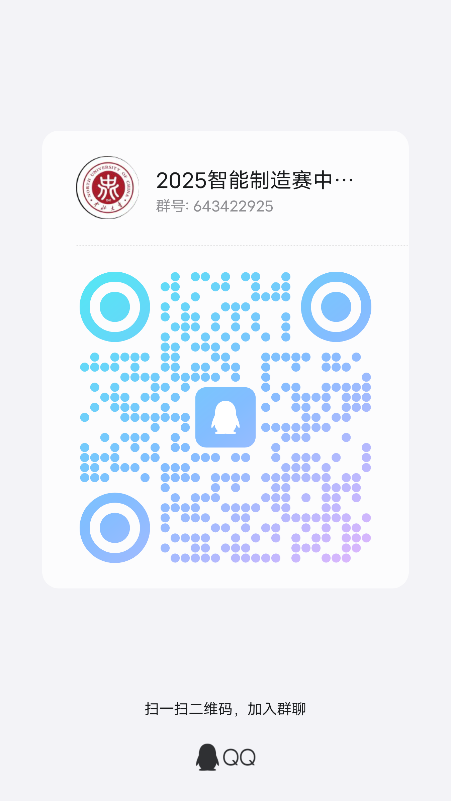 2025年4月18日起至2025年4月25日均可报名,本科组报名表(【腾讯文档】2025年智能制造大赛校赛报名表 //docs.qq.com/sheet/DQ1VqaHN5VXNPZnpy),以下为校赛QQ群(群号:643422925)。